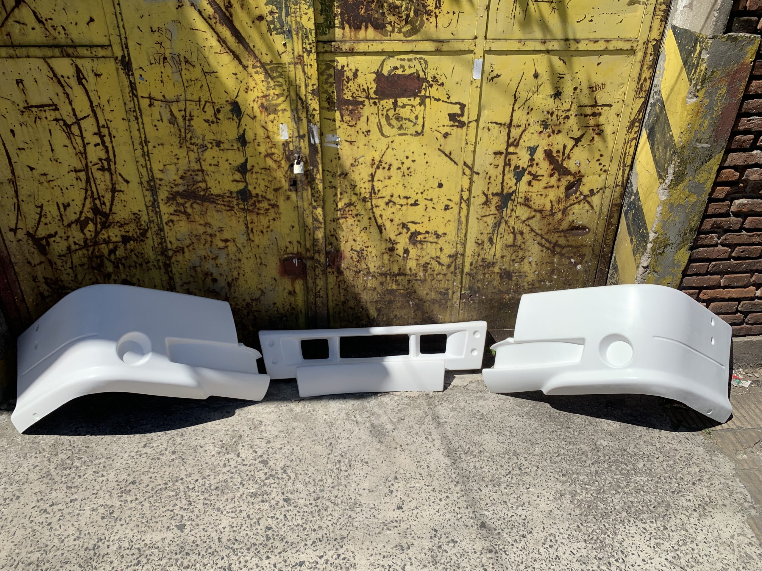Paragolpe fabricado en fibra de vidrio para armar en 4 partes (2 punteras y 2 centros). Aplicable a todos los Mercedes cabina simple con soportes laterales para anclar las punteras.